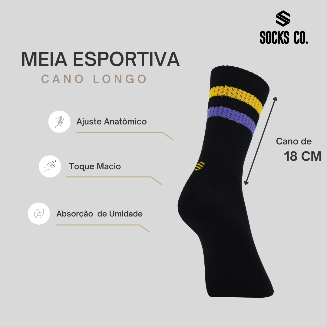 A combinação das fibras de algodão e elastano tornam as meias Socks Co. confortáveis, respiráveis e flexíveis, perfeitas para diversas ocasiões e atividades.