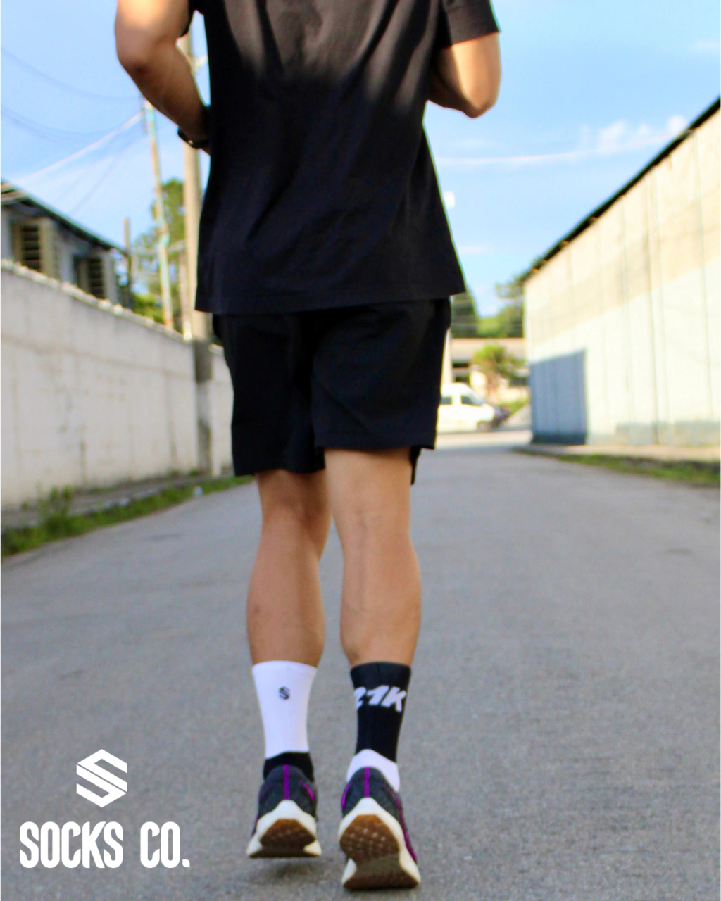 A combinação das fibras tecnológicas poliamida e elastano tornam as meias performance leves, respiráveis e semi-compressivas.